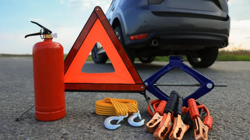 - Gaśnica i trójkąt ostrzegawczy.